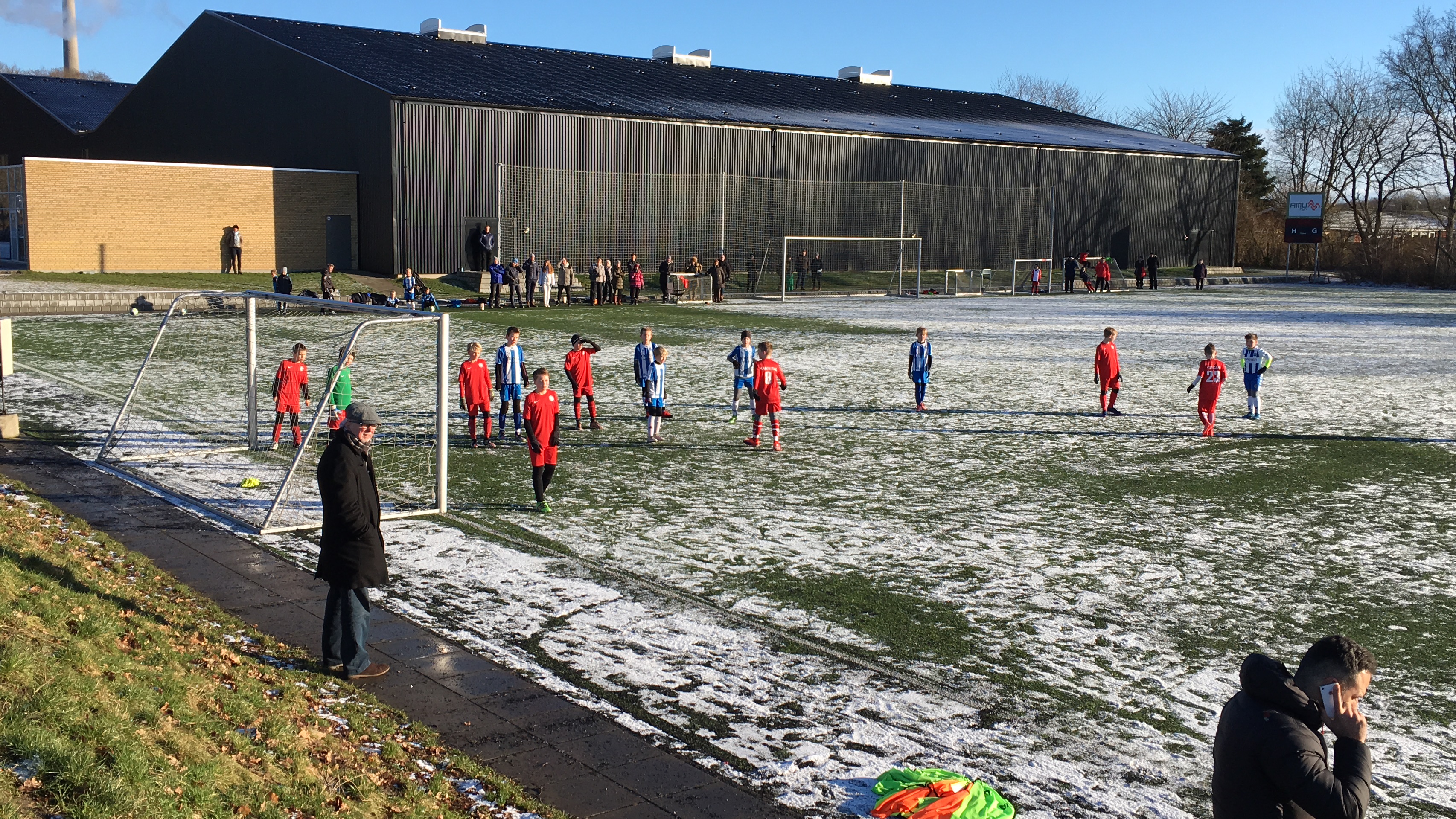 De to klubber havde arrangeret 2 træningskampe på BM søndag formiddag og med solen højt på himmelen og omkring grader omkring 0, var det fra start tydeligt at spillerne på banen havde tænkt sig at ville give tilskuerne noget at varme sig på.